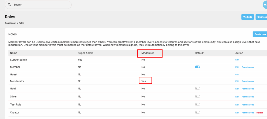 Moderator (admin): is the user who is assigned to the role that has Moderator permission