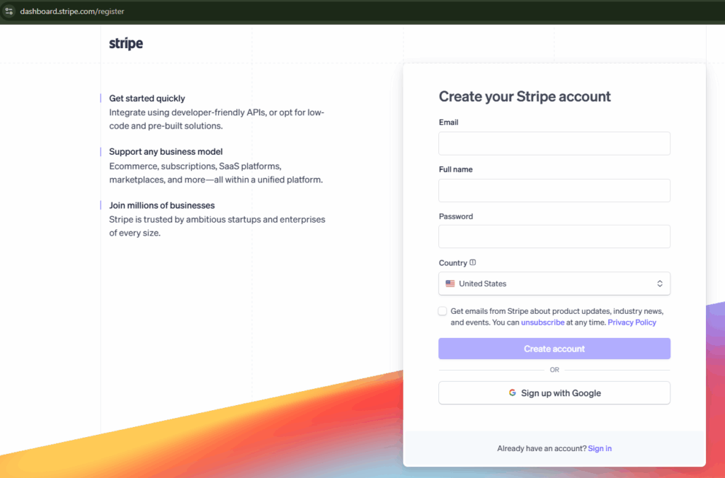 Create Stripe account #