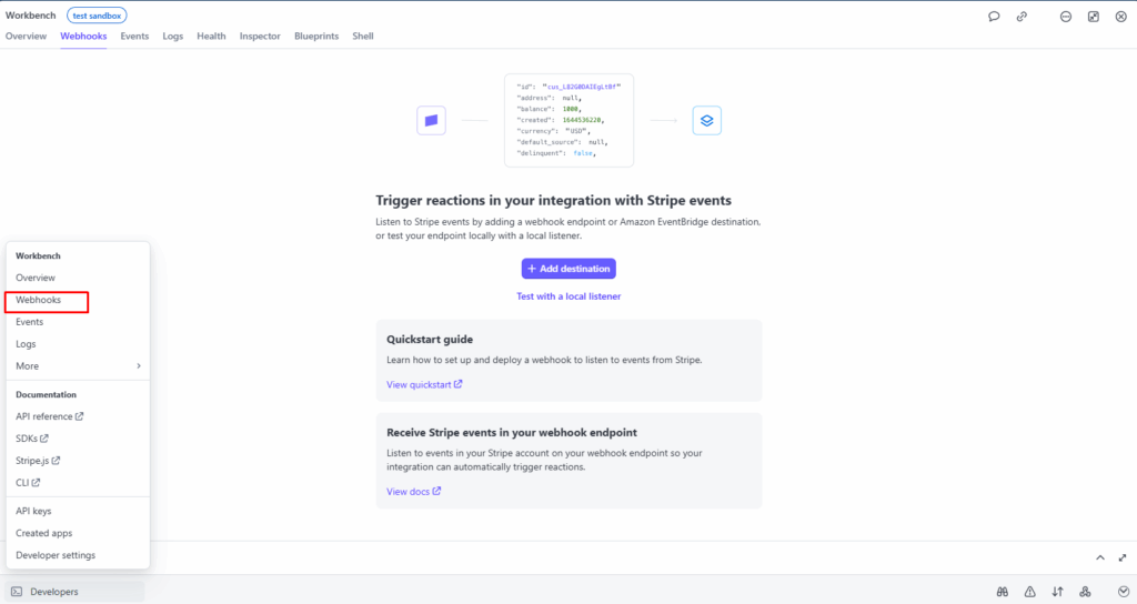 1. Developers → Webhooks