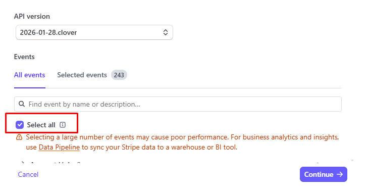 3. Check Select all → Continue