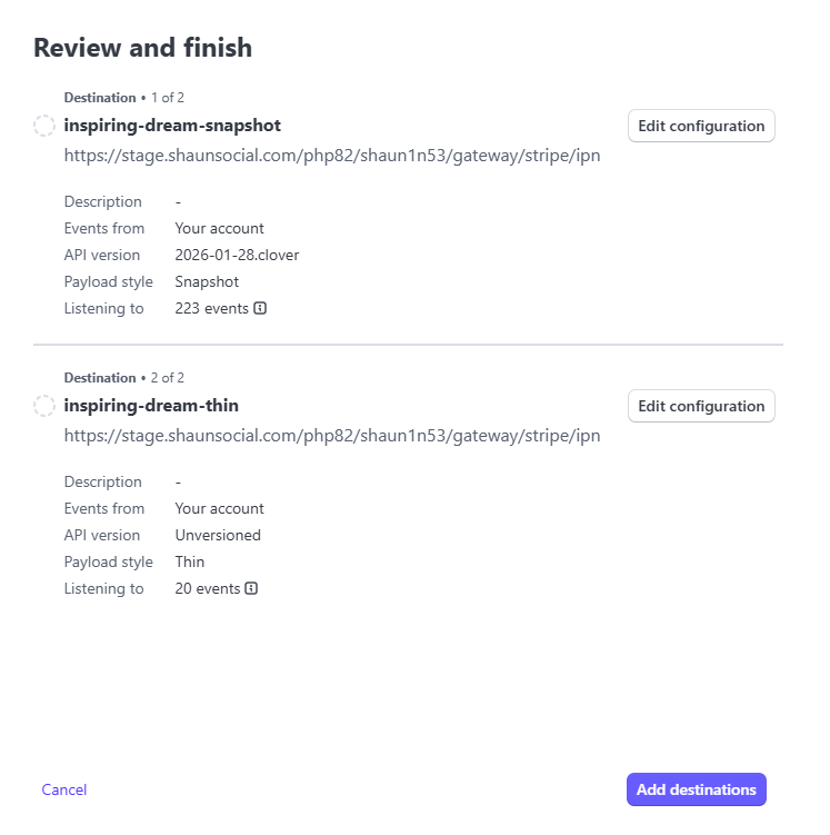 8. at Review and finish → Click Add destinations