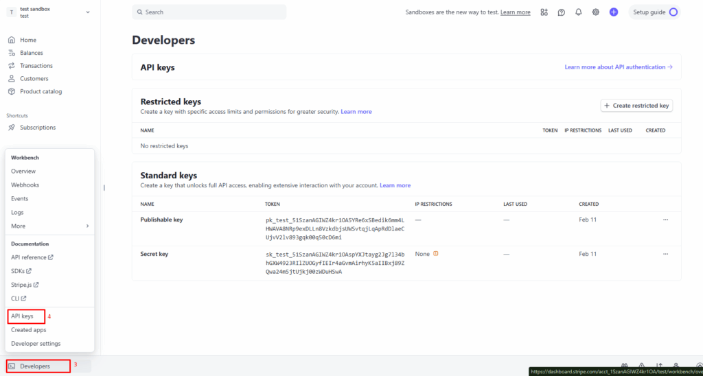 Secret key → sk_test_xxxxx