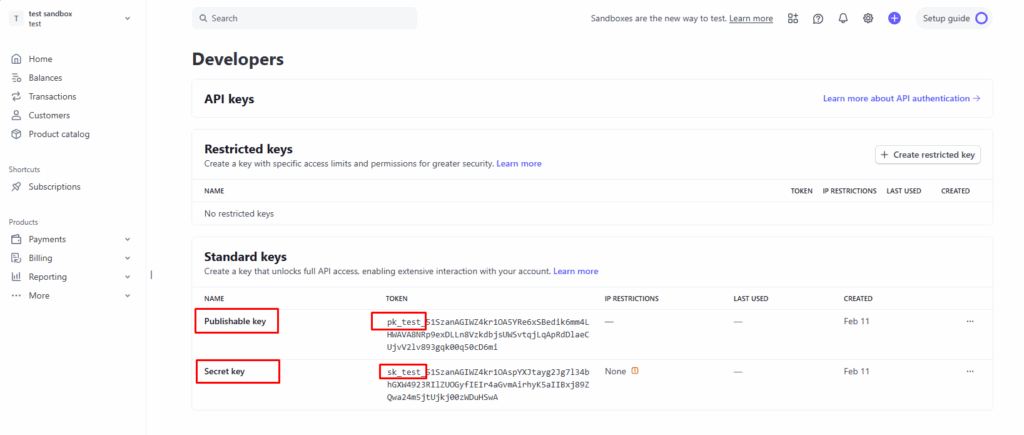 Publishable key → pk_test_xxxxx