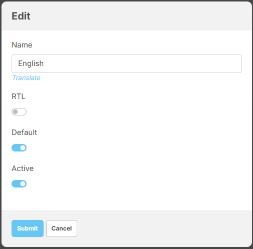 Active: don’t enable it if you just create a new language and are working on the translation.