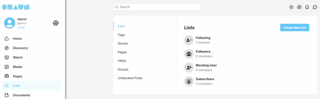 List is the place to display the user’s personal data such as list of following users, list of stories, list of tags….
