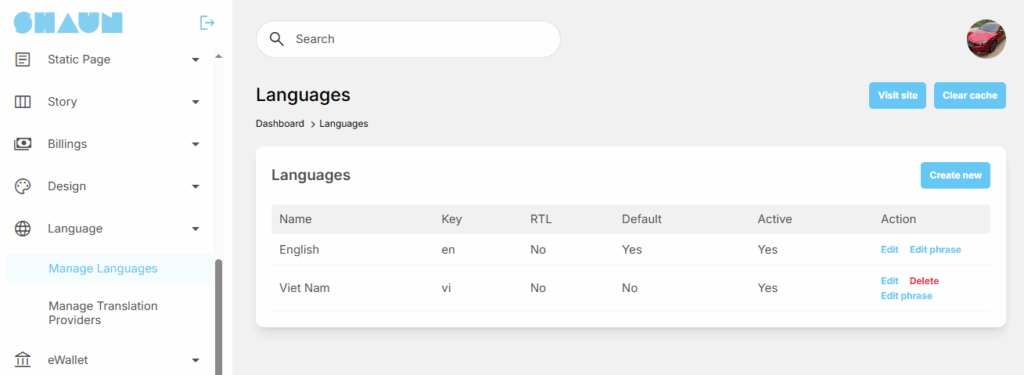 Install new language: Shaun is multi-language support so that you can add new language package for it and can edit phrases to translate to your desired languages
