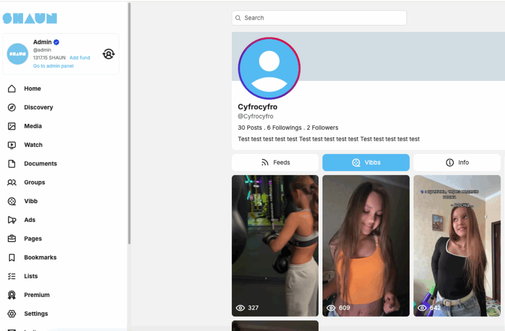 Following tab on Vibb home page: work same logic as “home” page of shaunSocial platform. It shows vibbs from you and members that you’re following.